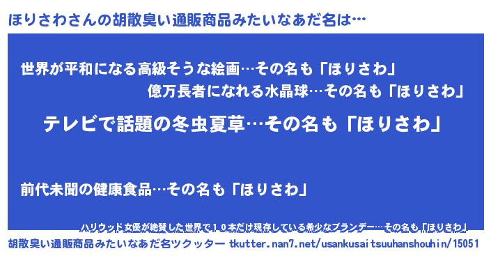 | 意味不明あだ名 | 『自称ほりさわ』『ほりさわフォーエバー』 |