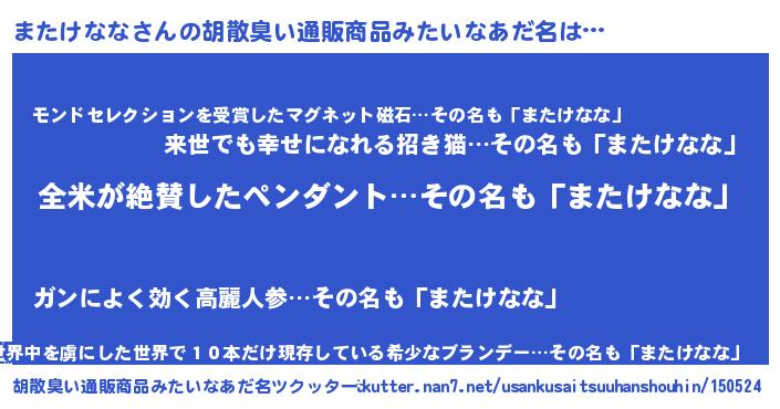 | ヘコむあだ名 | 『またっちょ』『またけなな(遠い目)』 |