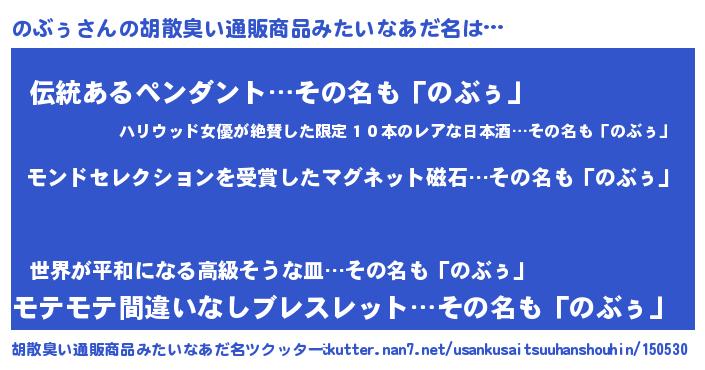 | 男性向けラノベタイトル風あだ名 | 『うちののぶぅが世界を掌握している!』 |