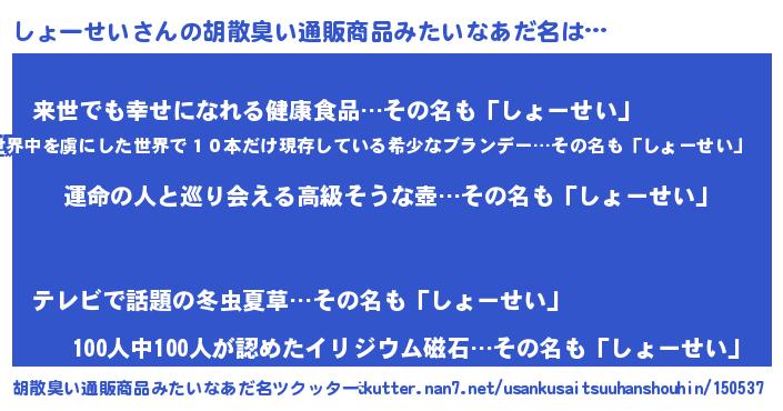 | 欧米人風あだ名 | 『しょーせいクリステル』 |