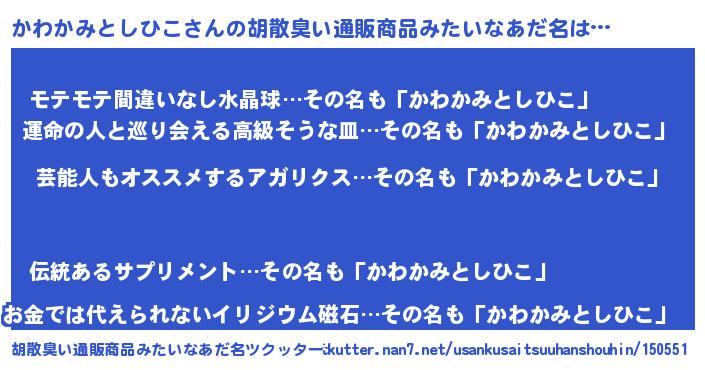 | 意味不明あだ名 | 『自称かわかみとしひこ』 |