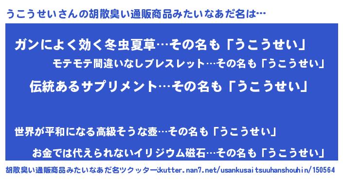 | 意味不明あだ名 | 『とにかく怪しいうこうせい』 |