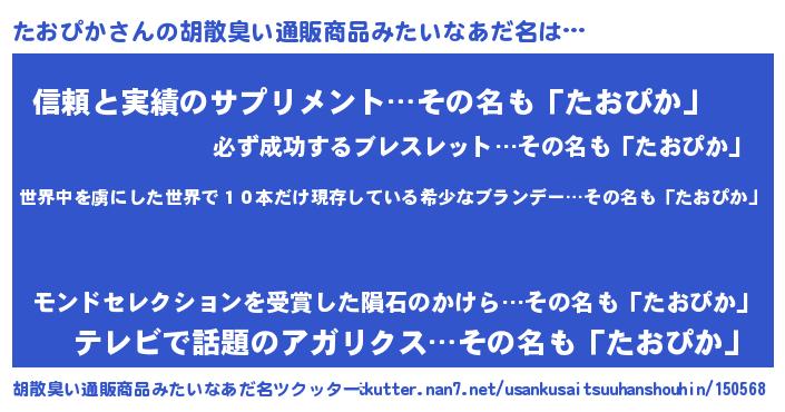 | 欧米人風あだ名 | 『アンジェラ・たおぴか』 |