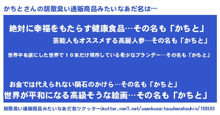 | 意味不明あだ名 | 『住所不定無職かちと(81歳)』『自称かちと』 |