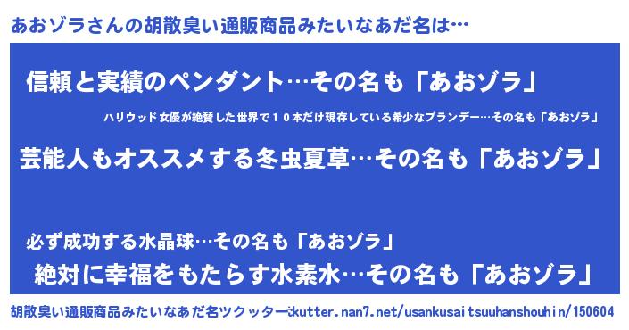 | 意味不明あだ名 | 『自称あおゾラ』『永久保存あおゾラ』 |
