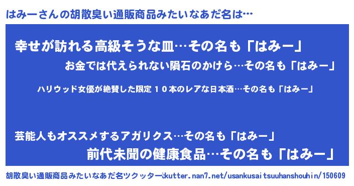 | 意味不明あだ名 | 『住所不定無職はみー(40歳)』『自称はみー』 |