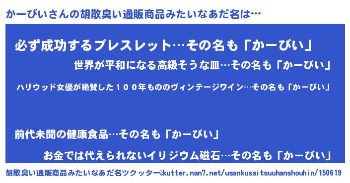 かーびいさんの胡散臭い通販商品みたいなあだ名をツクッター!