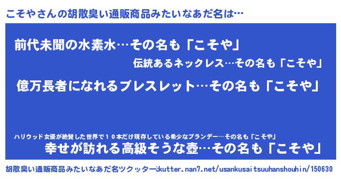 | ヘコむあだ名 | 『こそにー』『こそや(遠い目)』 |