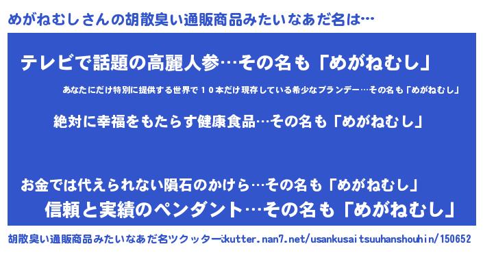 意味不明あだ名 | 『永久保存めがねむし』『自称めがねむし』 |