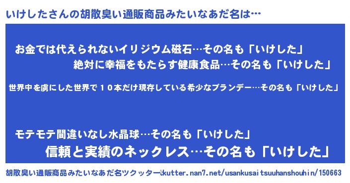 | 意味不明あだ名 | 『住所不定無職いけした(74歳)』 |