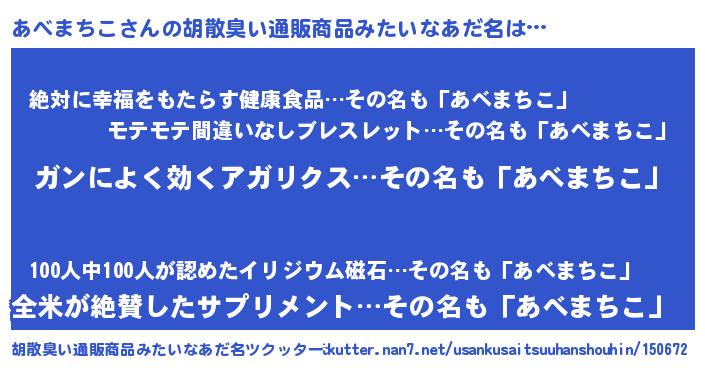 | 意味不明あだ名 | 『自称あべまちこ』『永久保存あべまちこ』 |