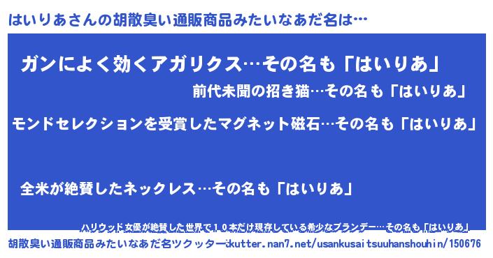 | ヘコむあだ名 | 『はいりあ(小並感)』『はいっ子』 |