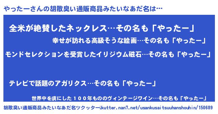 | 欧米人風あだ名 | 『ダニエルやったー』『ウサインやったー』 |
