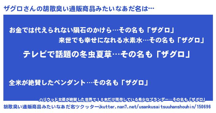 | 意味不明あだ名 | 『自称ザグロ』『しいたけ科ザグロ属』 |