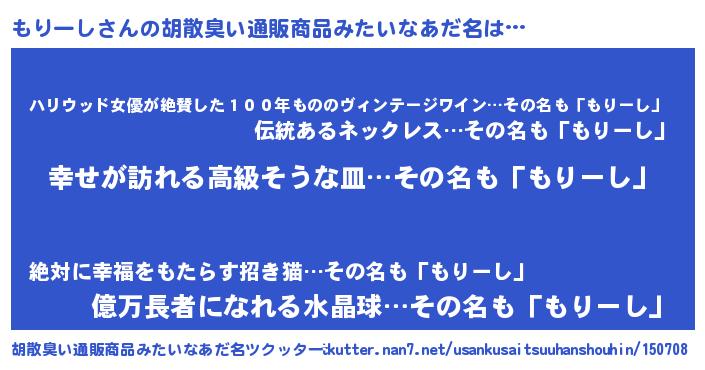 | 肩書あだ名 | 『もりーし国家主席』『もりーし大尉』 |