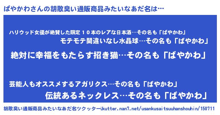 | 男性向けラノベタイトル風あだ名 | 『ばやかわという概念が存在しない退屈な世界 』 |