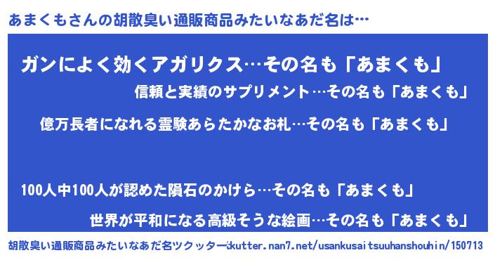 | 男性向けラノベタイトル風あだ名 | 『アマクモアートオンライン』 |