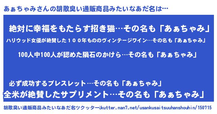 | ヘコむあだ名 | 『あぁちゃみ(苦笑)』『あぁお』 |