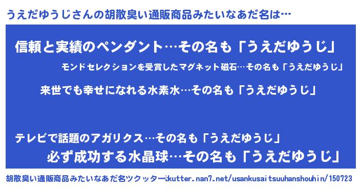 | ヘコむあだ名 | 『うえだゆうじ(遠い目)』『うえっちょ』 |