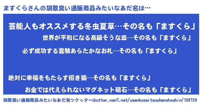 | 意味不明あだ名 | 『エリンギ科ますくら属』『自称ますくら』 |