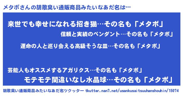 | ファンタジー風あだ名 | 『エターナルメタボー』『メタディッシュ』 |