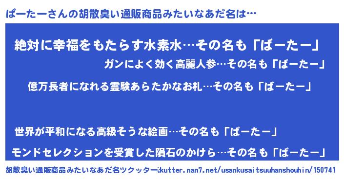 | 欧米人風あだ名 | 『マイケルばーたー』『ダニエルばーたー』 |