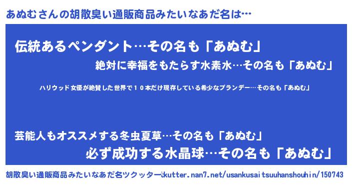 | ヒーロー風カッコイイあだ名 | 『仮面アヌダー』『魔戒騎士アヌ』 |