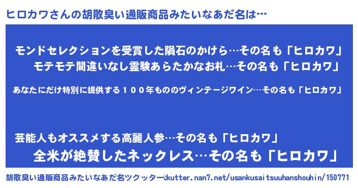 | 意味不明あだ名 | 『住所不定無職ヒロカワ(13歳)』 |