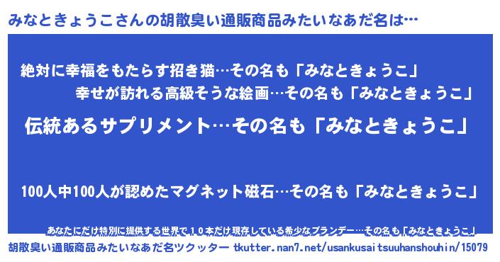 | ヘコむあだ名 | 『みなを』『みなときょうこ(笑)』 |