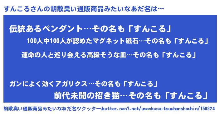 | 欧米人風あだ名 | 『すんこるクリステル』 |