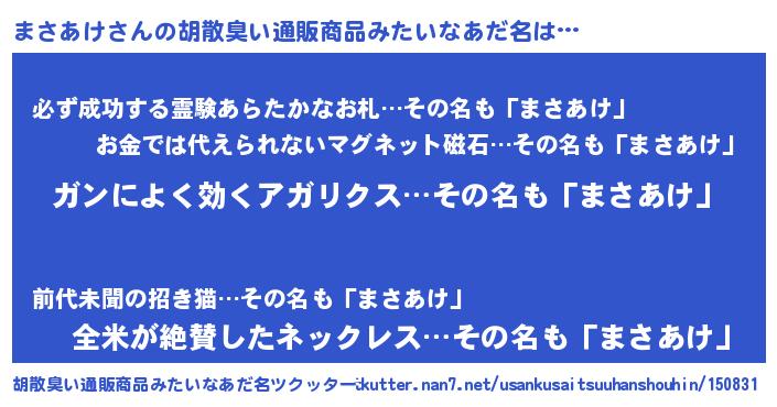 | ヒーロー風カッコイイあだ名 | 『ウルトラ戦士マサアケ』『天弓騎士マサ』 |