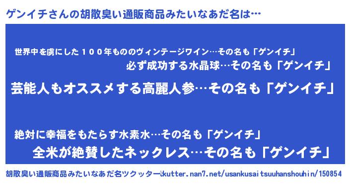 | ヒーロー風カッコイイあだ名 | 『究極戦士ゲンイチ』『仮面ゲンダー』 |