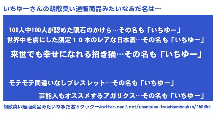 | 意味不明あだ名 | 『永久保存いちゆー』『自称いちゆー』 |