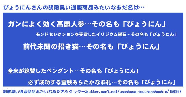 | ヘコむあだ名 | 『びょうにん(笑)』『びょふぇ~』 |