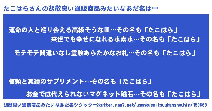 | 男性向けラノベタイトル風あだ名 | 『たこはらの憂鬱』『緋弾のタコハラ』 |