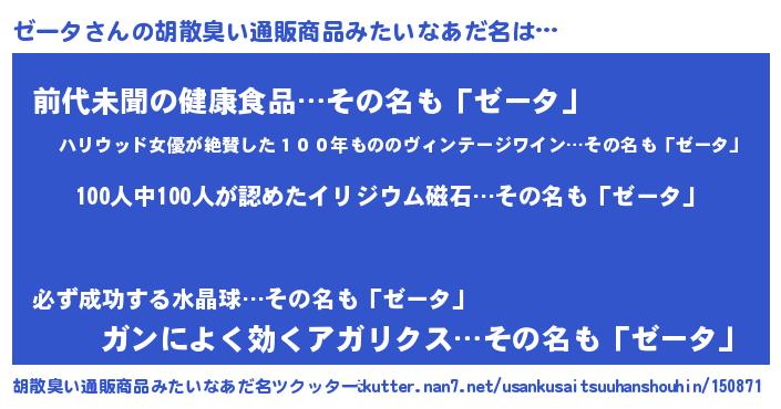 | 意味不明あだ名 | 『眠気覚ましガムゼータ味』『自称ゼータ』 |