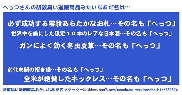 | 意味不明あだ名 | 『自称へっつ』『ペロリンへっつ』 |