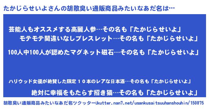 | ヒーロー風カッコイイあだ名 | 『正義の使者たかじらせいよ』 |