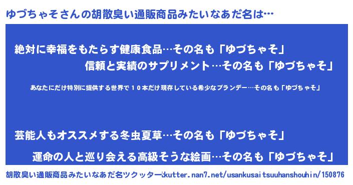 | 意味不明あだ名 | 『住所不定無職ゆづちゃそ(71歳)』 |