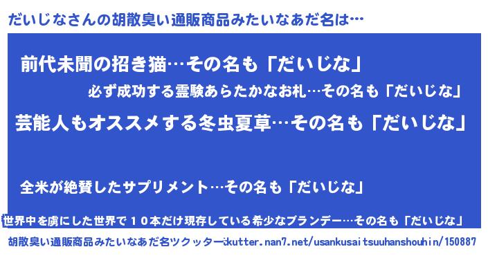 | ヘコむあだ名 | 『だいじな(苦笑)』『だいふぇ~』 |