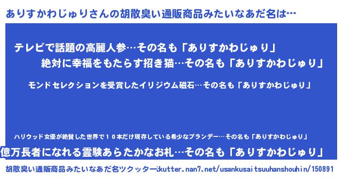 | ヘコむあだ名 | 『ありふぇ~』『ありすかわじゅり(小並感)』 |