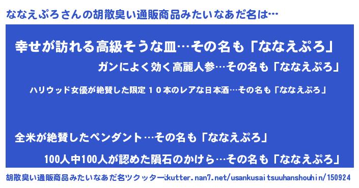 | ヘコむあだ名 | 『つくし』『ななを』『ななっふぃ~』 |