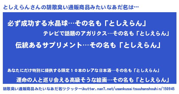 | 意味不明あだ名 | 『とにかく怪しいとしえらん』 |