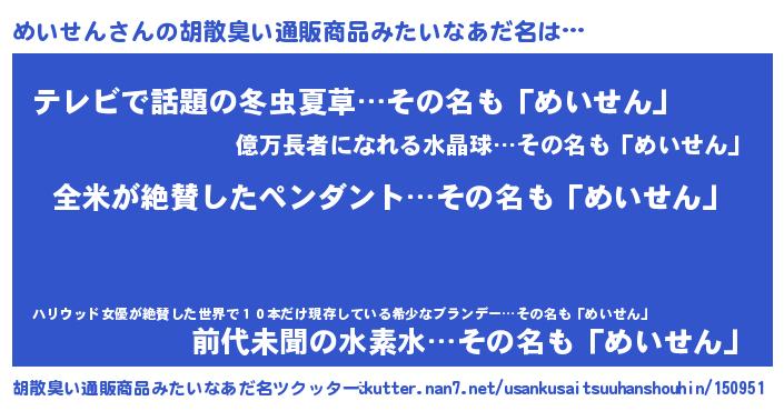 | ヘコむあだ名 | 『めいっぺ』『めいせん(苦笑)』 |