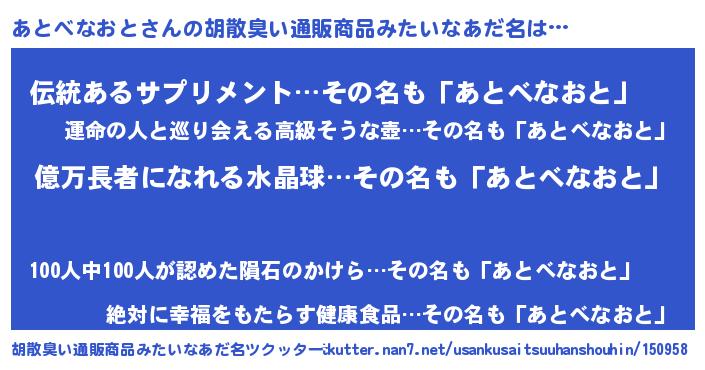 | ヘコむあだ名 | 『あとにゅー』『あとっぺ』『豆乳』 |