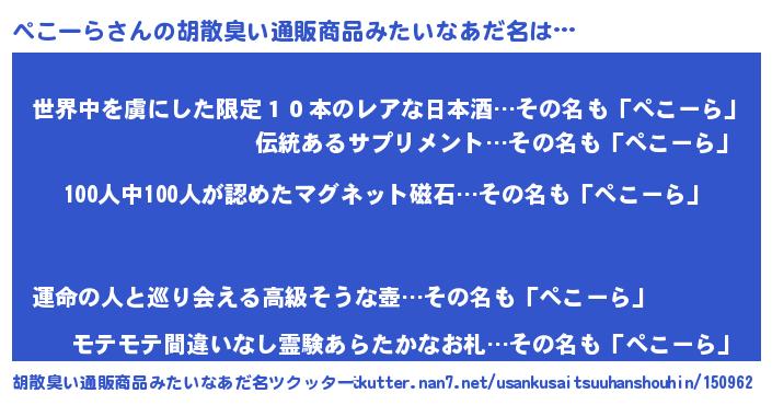 | ヒーロー風カッコイイあだ名 | 『正義の使者ぺこーら』『仮面ペコダー』 |