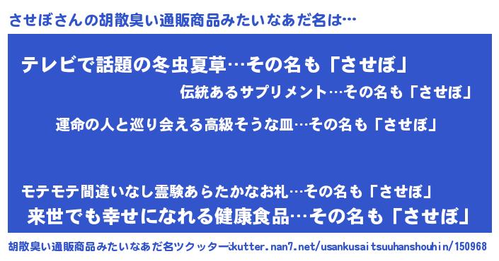 | 意味不明あだ名 | 『させぼフォーエバー』『自称させぼ』 |