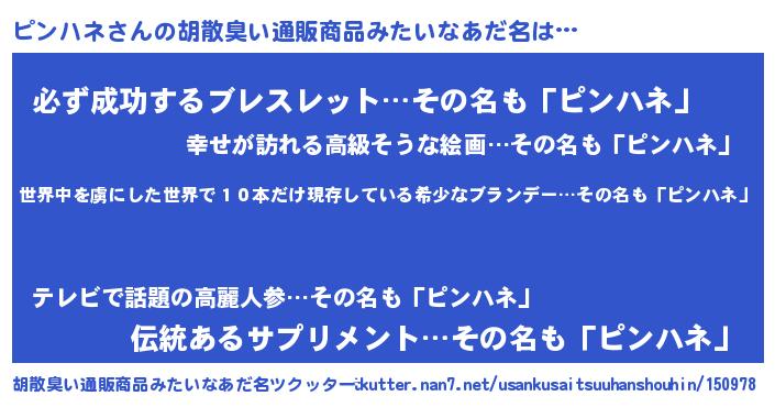 | 意味不明あだ名 | 『住所不定無職ピンハネ(85歳)』 |