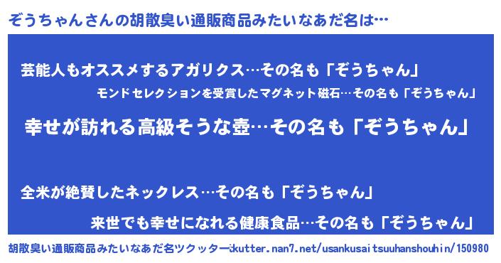 | 意味不明あだ名 | 『ぞうちゃんフォーエバー』 |