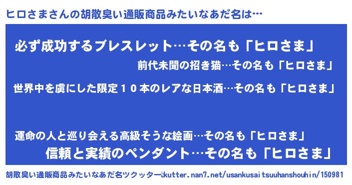 | ヒーロー風カッコイイあだ名 | 『仮面ヒロダー』『スーパーヒロサマ』 |